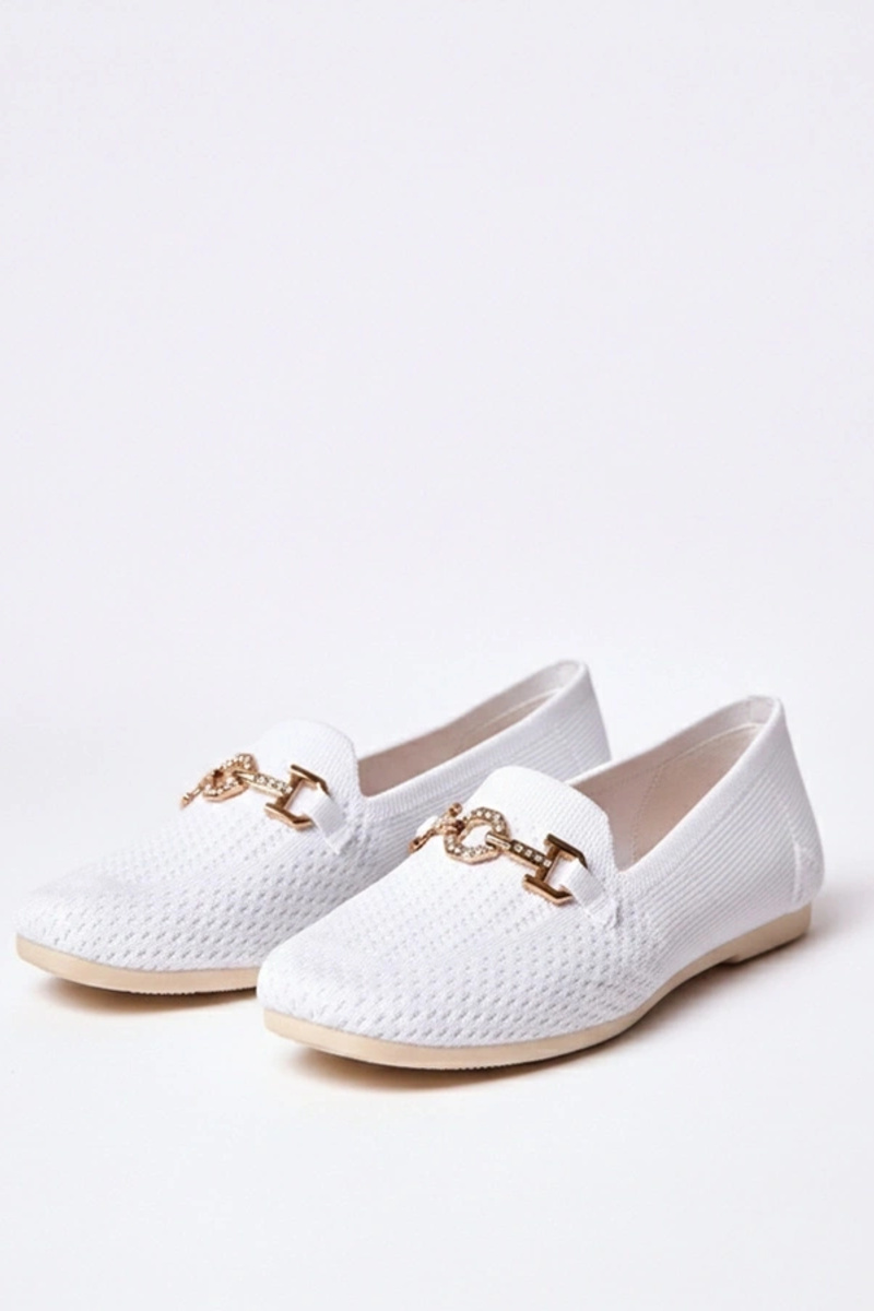 Mocassins en tissu blancs avec décoration dorée Mathilde