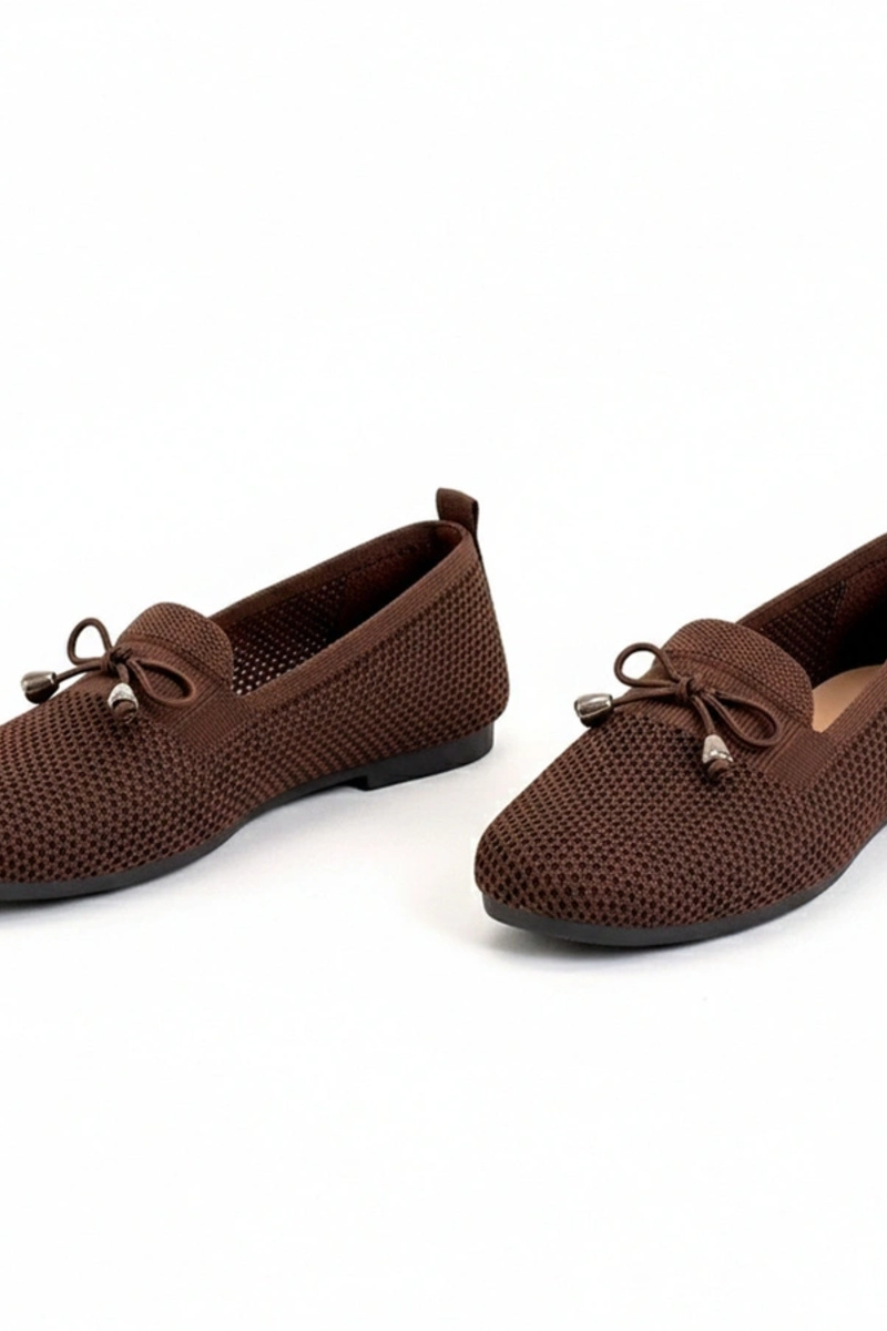 Mocassins en tissu couleur sable foncé avec nœud Aubrey