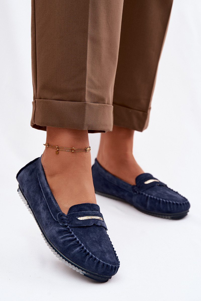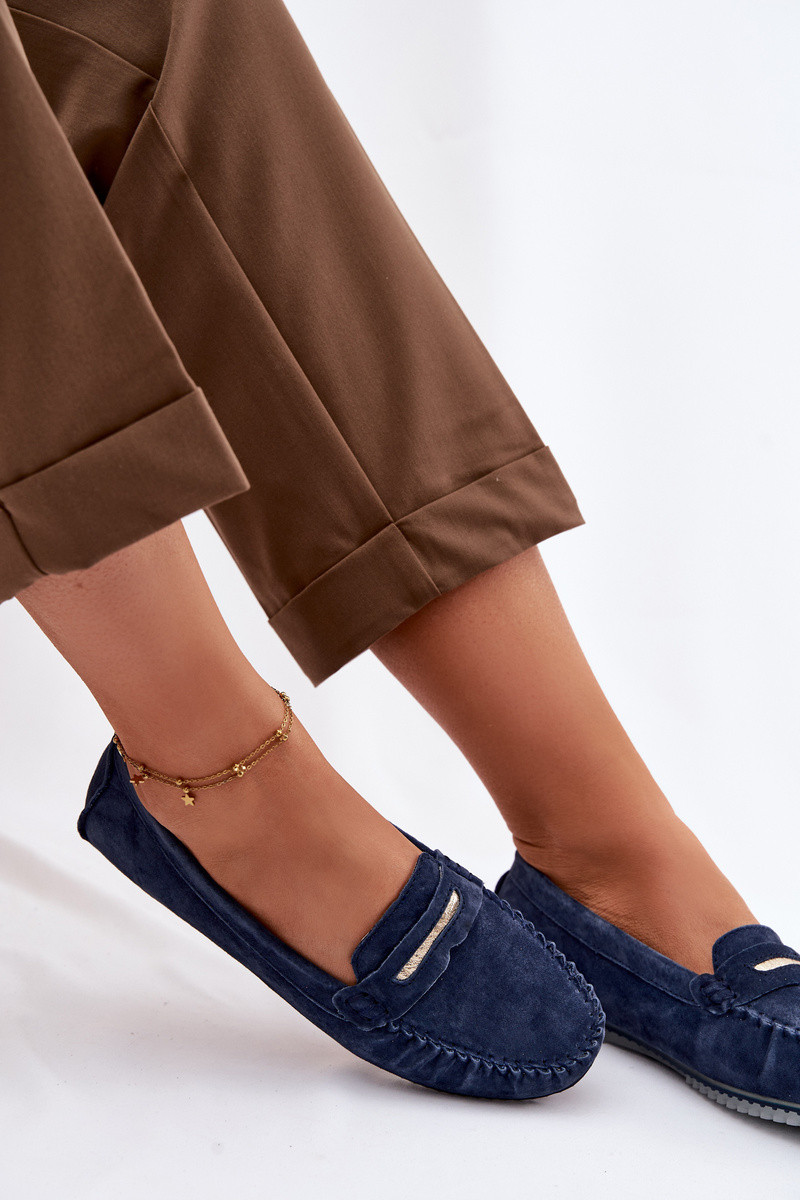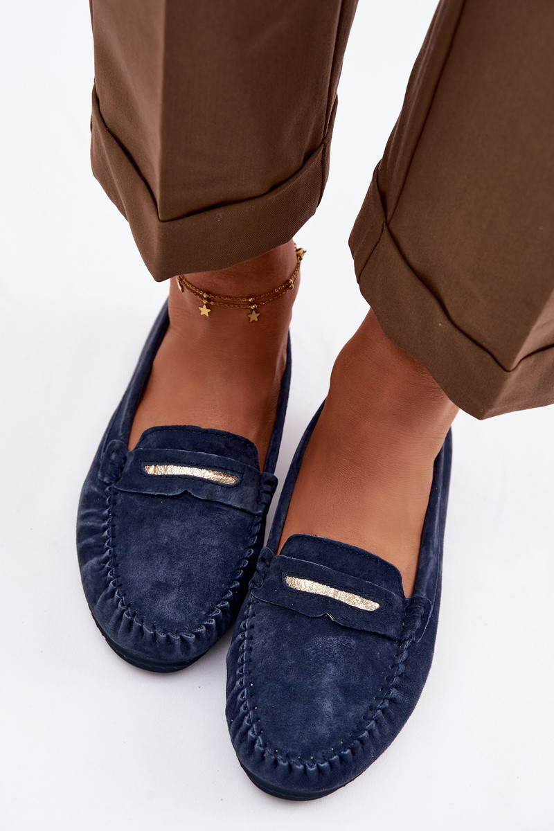 Mocassins plats pour femmes en daim naturel S.Barski LR61-7029 bleu foncé