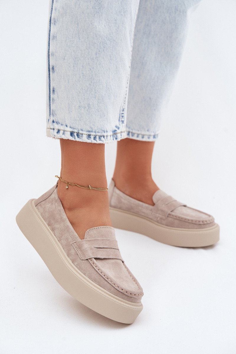 Mocassins en faux daim couleur sable sur plateforme Vinceza 79594