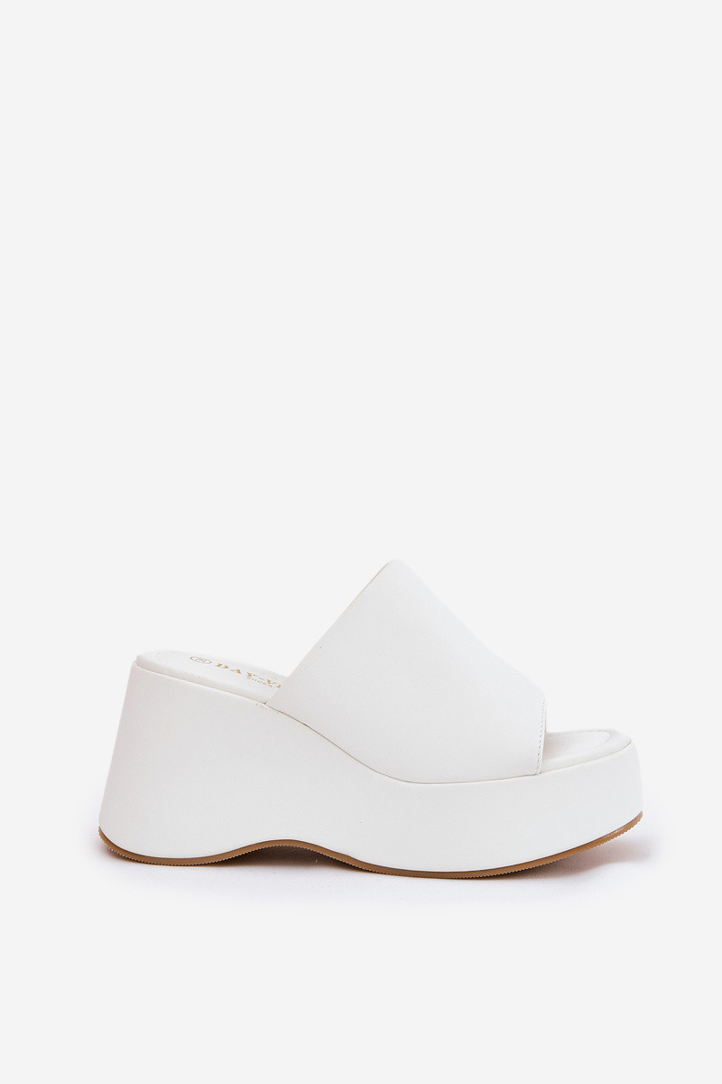Chaussons en simili cuir pour femmes avec plateforme couleur blanche