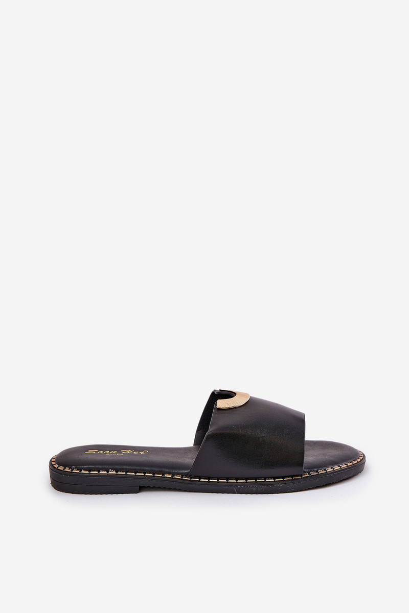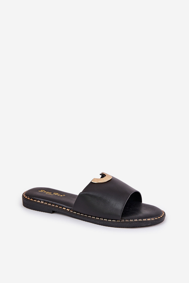 Pantoufles pour femmes Eko Peau Avec des décorationsi Detalami couleur noire Mevith