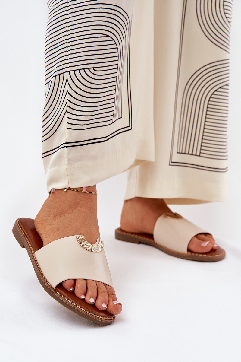 Pantoufles pour femmes Eko Peau Avec des décorationsi Detalami beige Mevith