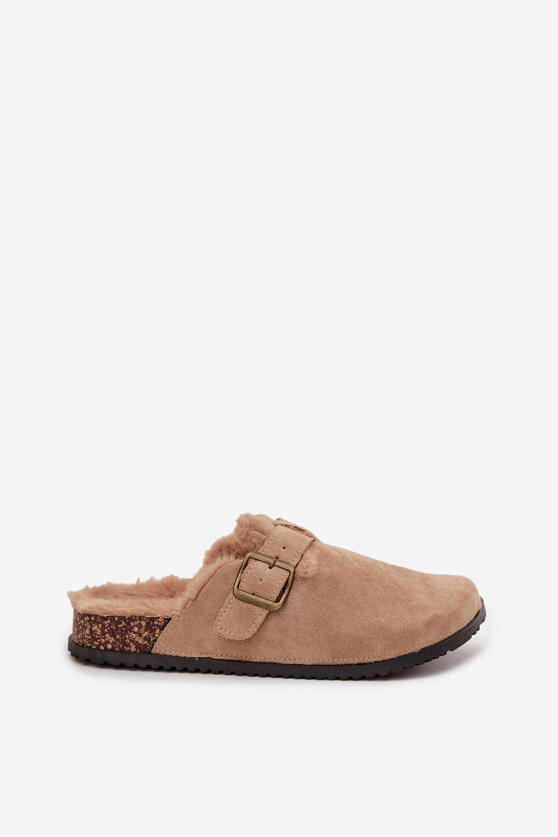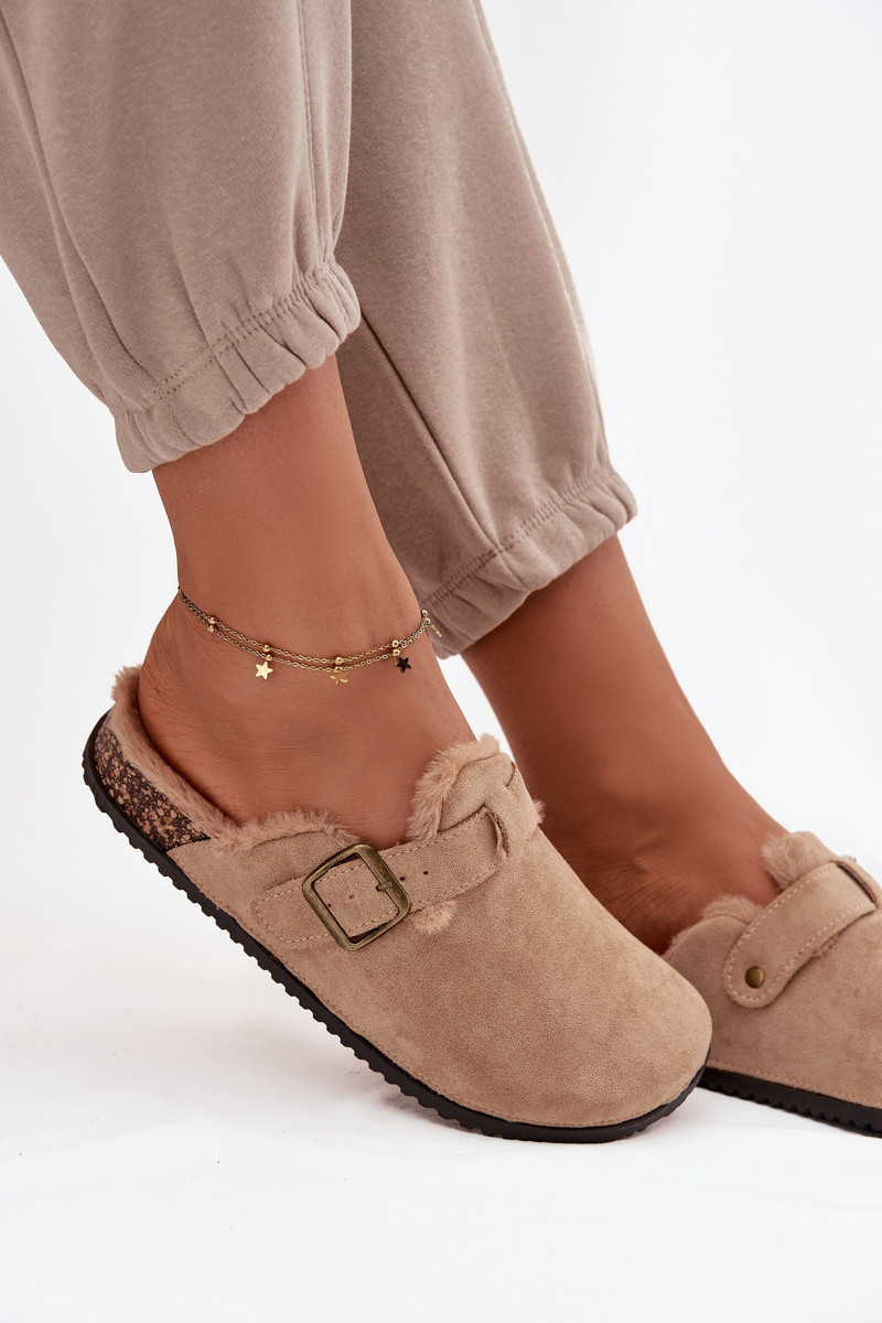 Chaussons Sabots Féminin réchauffer avec de la fourrure à l intérieur avec boucles beige Sylisse