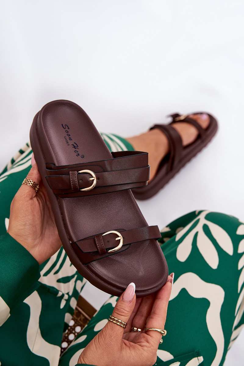 Pantoufles pour femmes avec une plateforme Ze couleur doréemi avec bouclesmi marron DANSernone