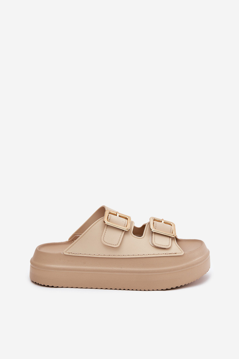 Chaussons pour femmes avec plateforme et boucles dorées, couleur sable