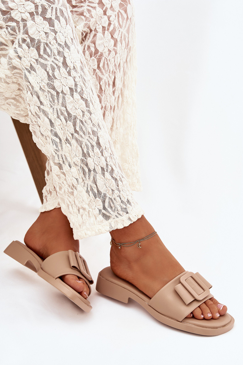 Chaussons pour femmes avec larges talons et boucles couleur sable « Melivra »