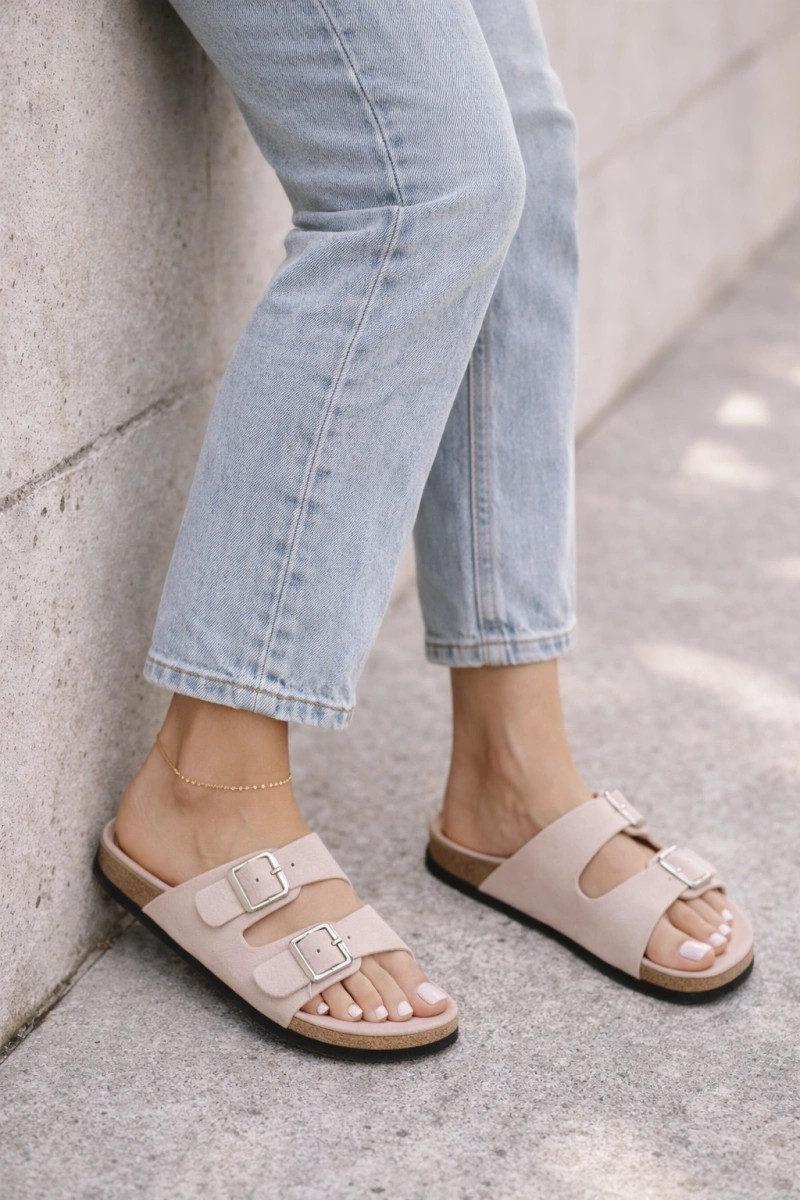 Chaussons rose clair pour femmes avec boucles « Oliena »