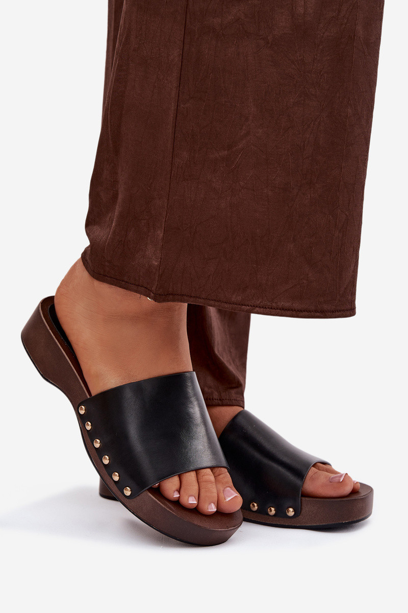 Chaussons pour femmes avec des clous dorés de couleur noire Terissa