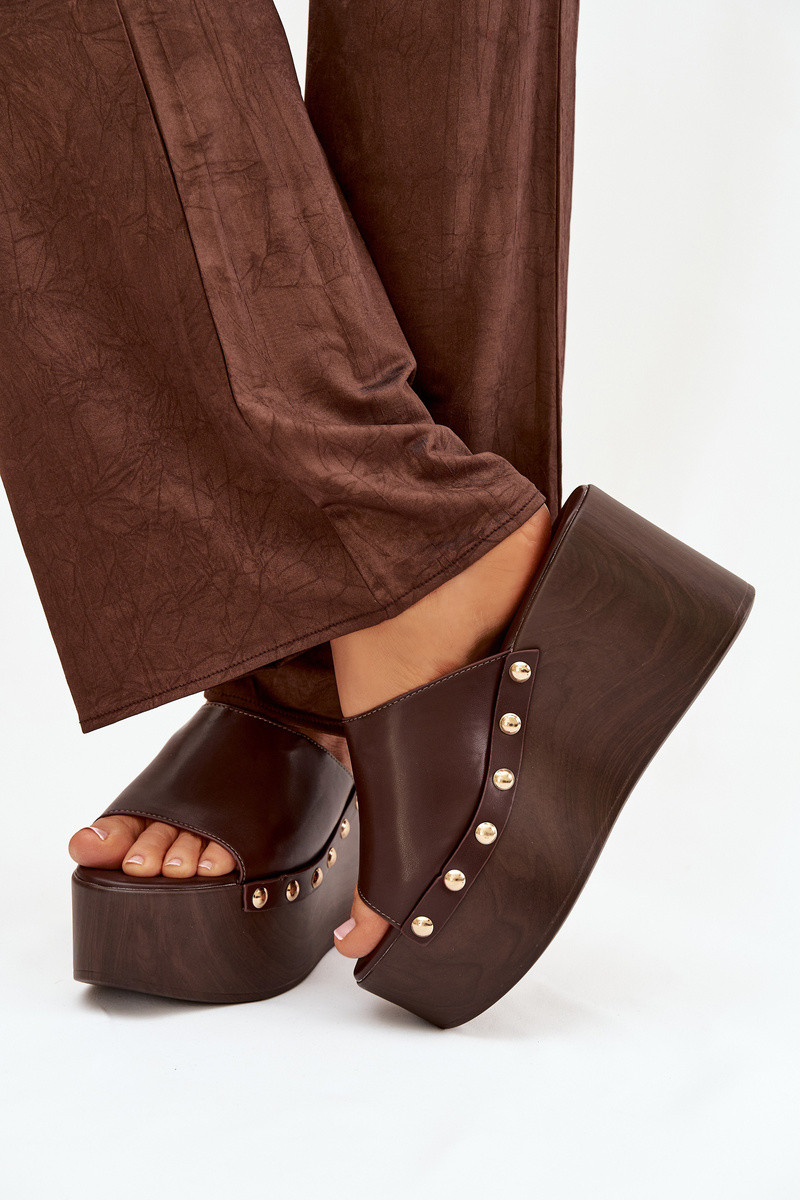 Chaussons pour femmes à plateforme avec clous de couleur chocolat Taireline