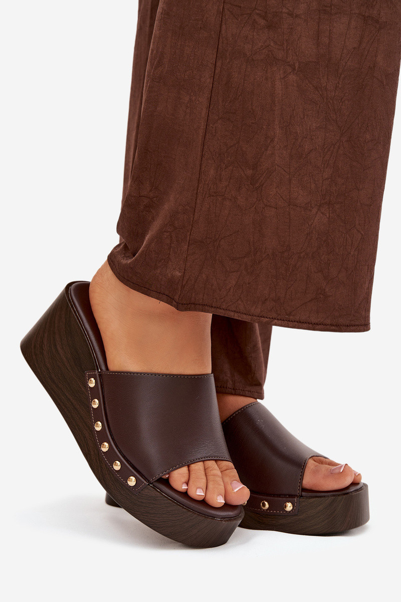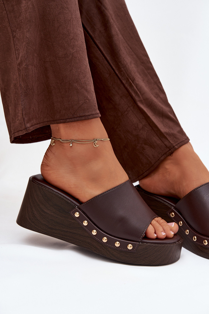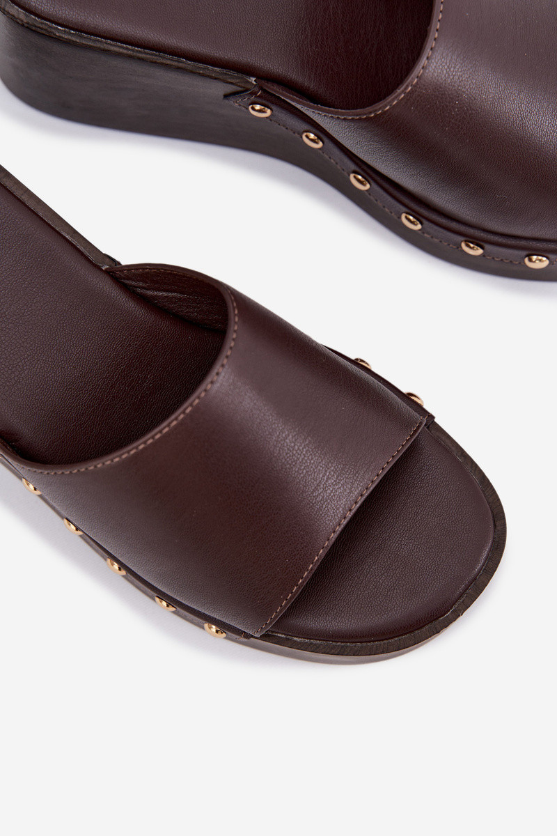 Chaussons pour femmes à plateforme avec des clous dorés de couleur chocolat Arionne
