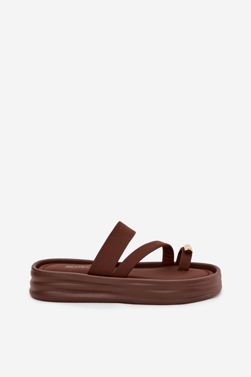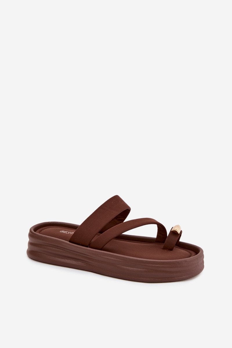 Sandales chocolat avec bandes et détails dorés Farielle