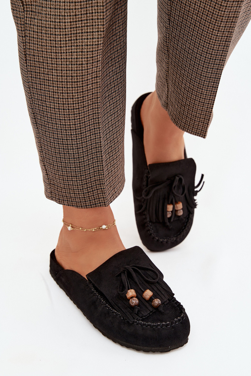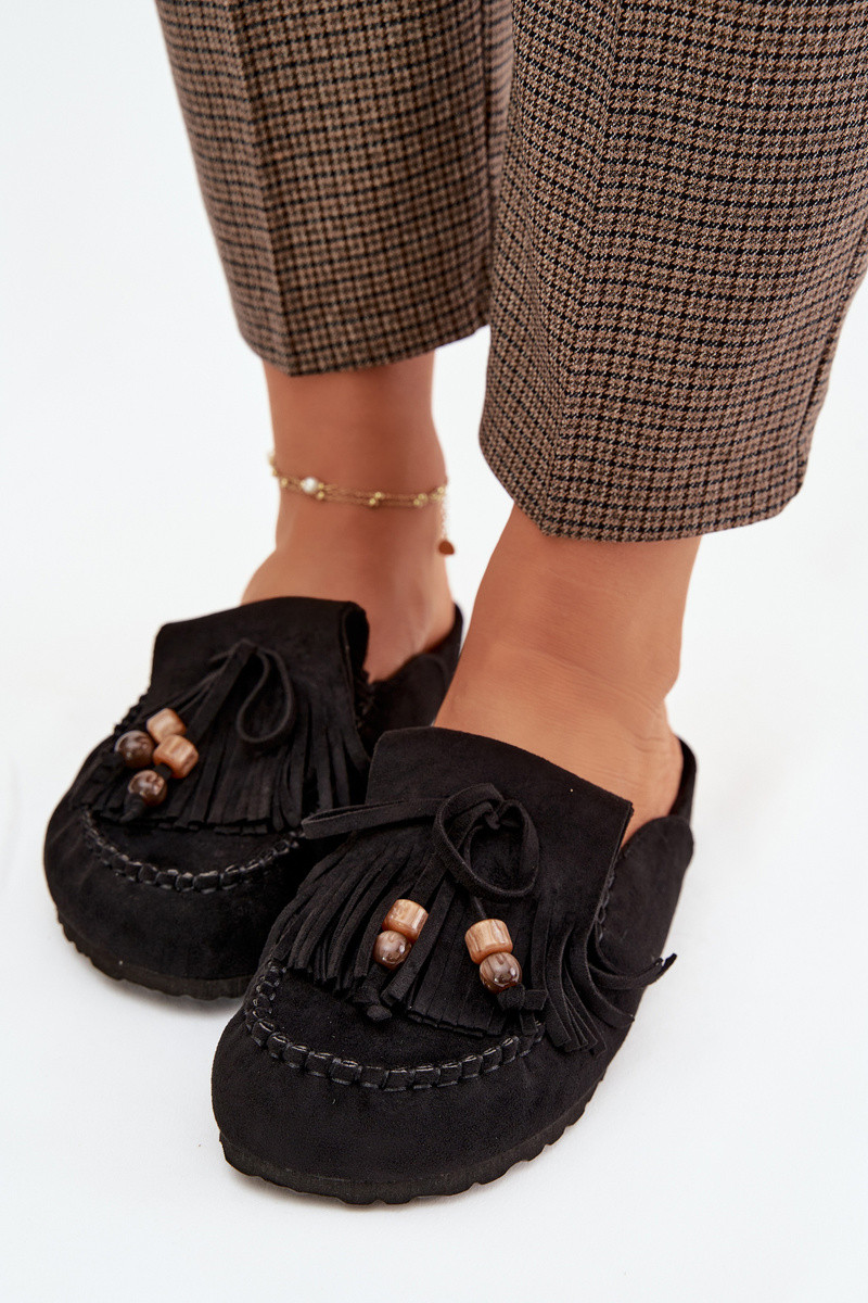 Pantoufles pour femmes Mule avec des franges I couleur corailikami couleur noire Belissa