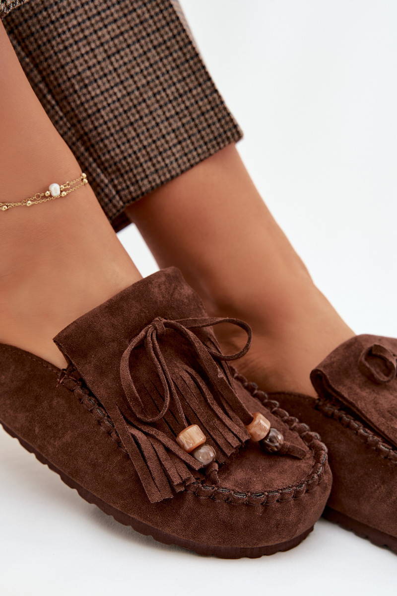 Pantoufles pour femmes Mule avec des franges I couleur corailikami CzekoladoÀe Belissa