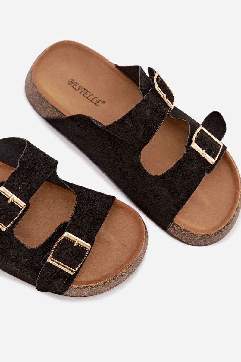 Pantoufles pour femmes avec une plateforme Ze couleur doréemi avec bouclesmi couleur noire Tovessa