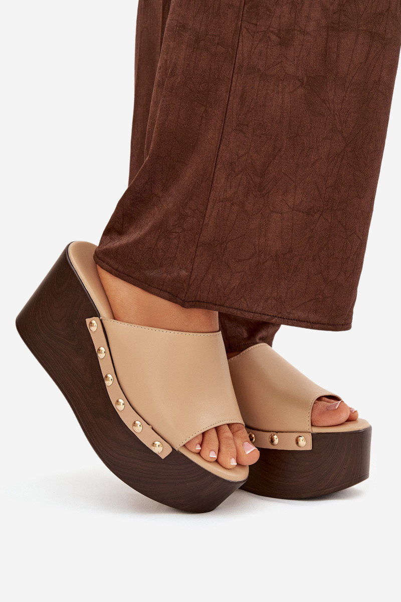 Pantoufles pour femmes Sur un coin avec des rivets beige Il fautreline