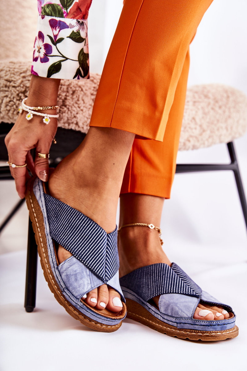 Tai turiciejka 04986-17 - Claquettes profilées en simili cuir couleur bleue