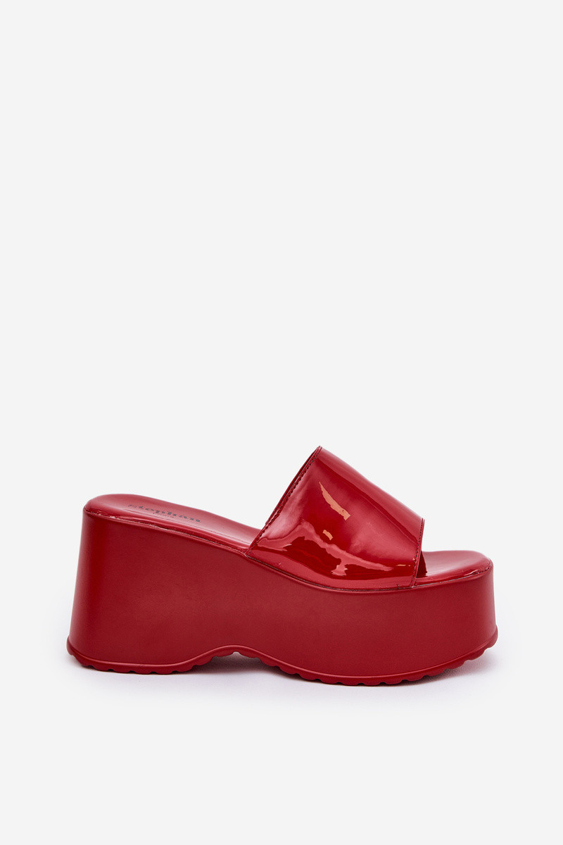avec effet vernis Pantoufles pour femmes avec une plateforme I Koturnie couleur rouge Nellevia