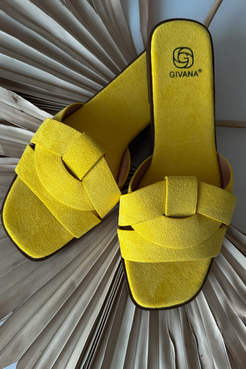 Mules plates avec lanières en suède synthétique, jaunes Florane