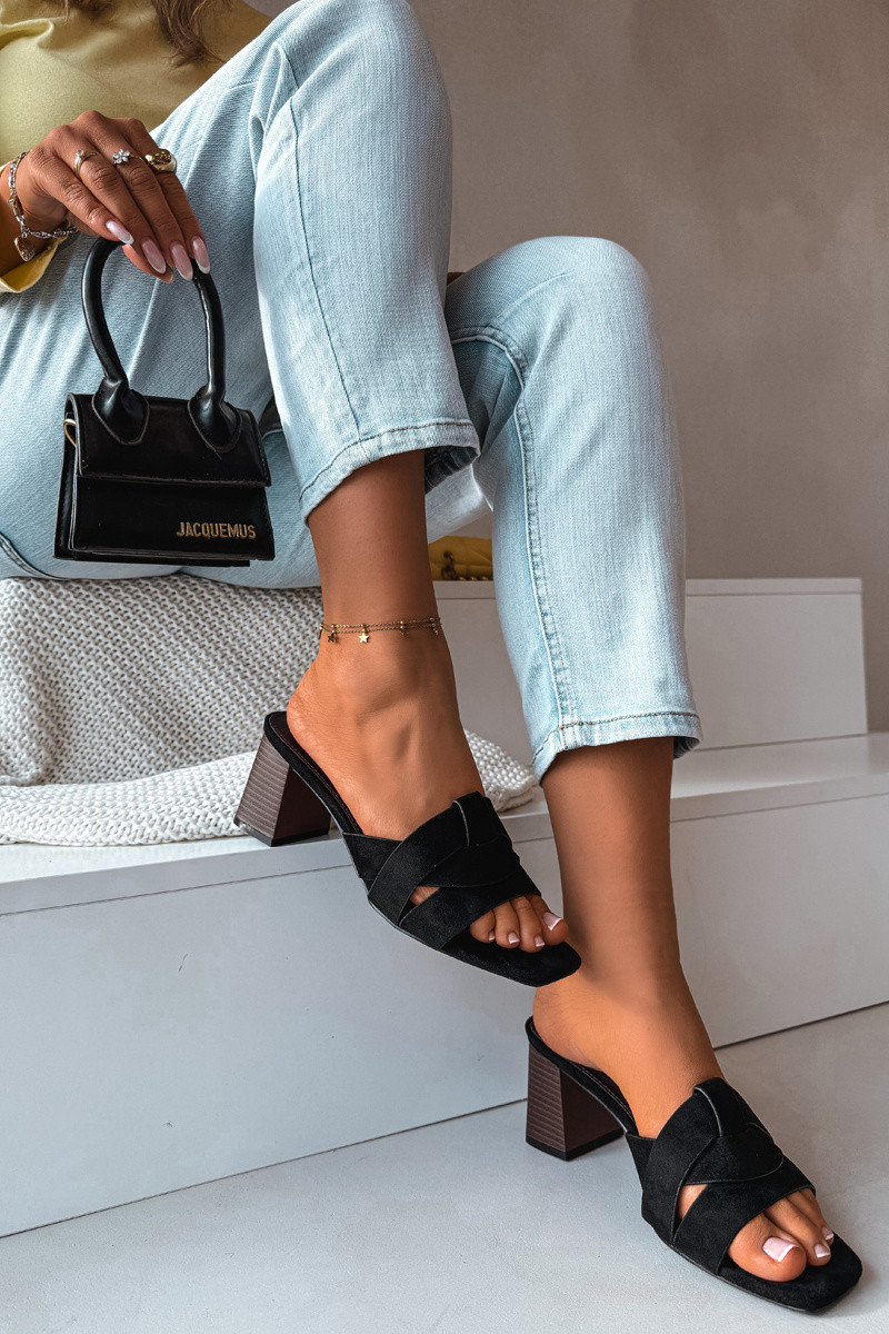 Pantoufles pour femmes avec talons et bandes en daim, couleur noire, Corivelle