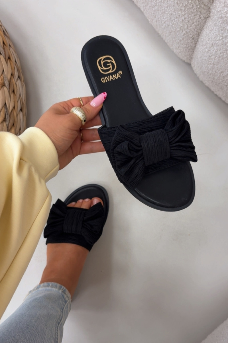 Chaussons pour femmes noirs à talons larges avec nœuds Amivelle