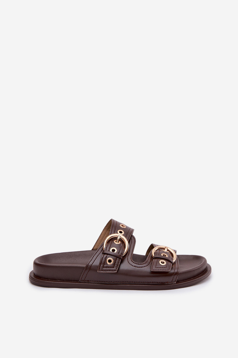 Chaussons pour femmes couleur chocolat avec boucles dorées en simili cuir Bellarya