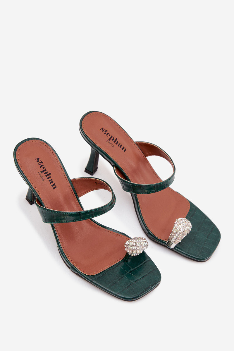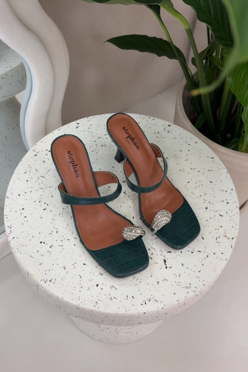 Chaussons pour femmes couleur vert bouteille avec talons fins et détails ornés Lorissa
