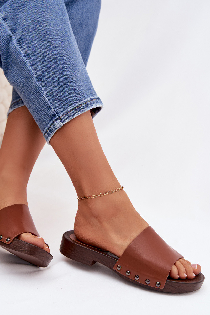 Pantoufles pour femmes avec des rivets avec des talons larges marron Brinalle