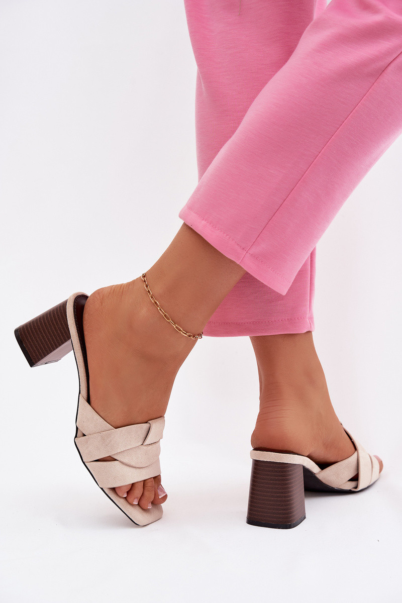Pantoufles pour femmes avec des talons avec des bandes en daim écologiqueoÀe beige Corivelle