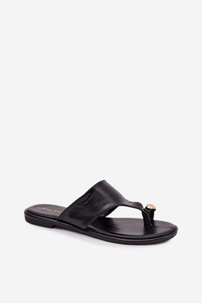 Chaussons plats pour femmes en simili cuir avec des détails dorés couleur noire Lavessa