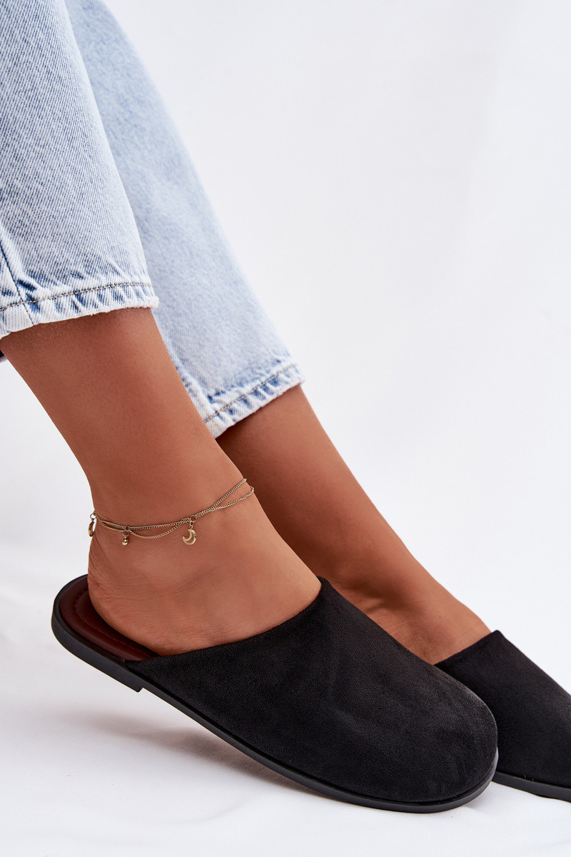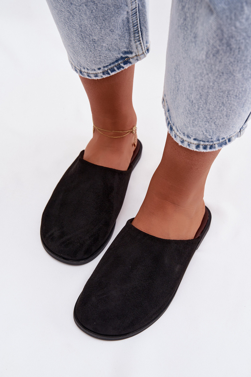 Chaussons Appartement pour femmesen daim écologiqueu couleur noire Veronelle