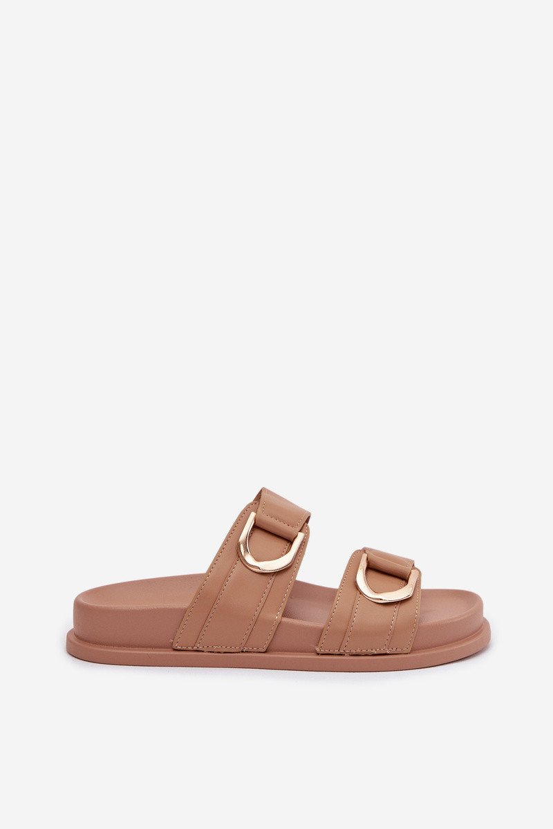 Eko Pantoufles en cuir Féminin avec des bandes beige Rosinessa