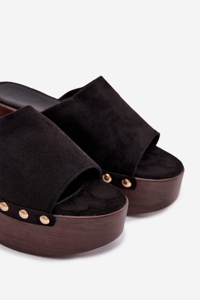 Pantoufles pour femmes Sur un coin Ze couleur doréemi Goujons en daim écologiqueoÀe couleur noire Helivina