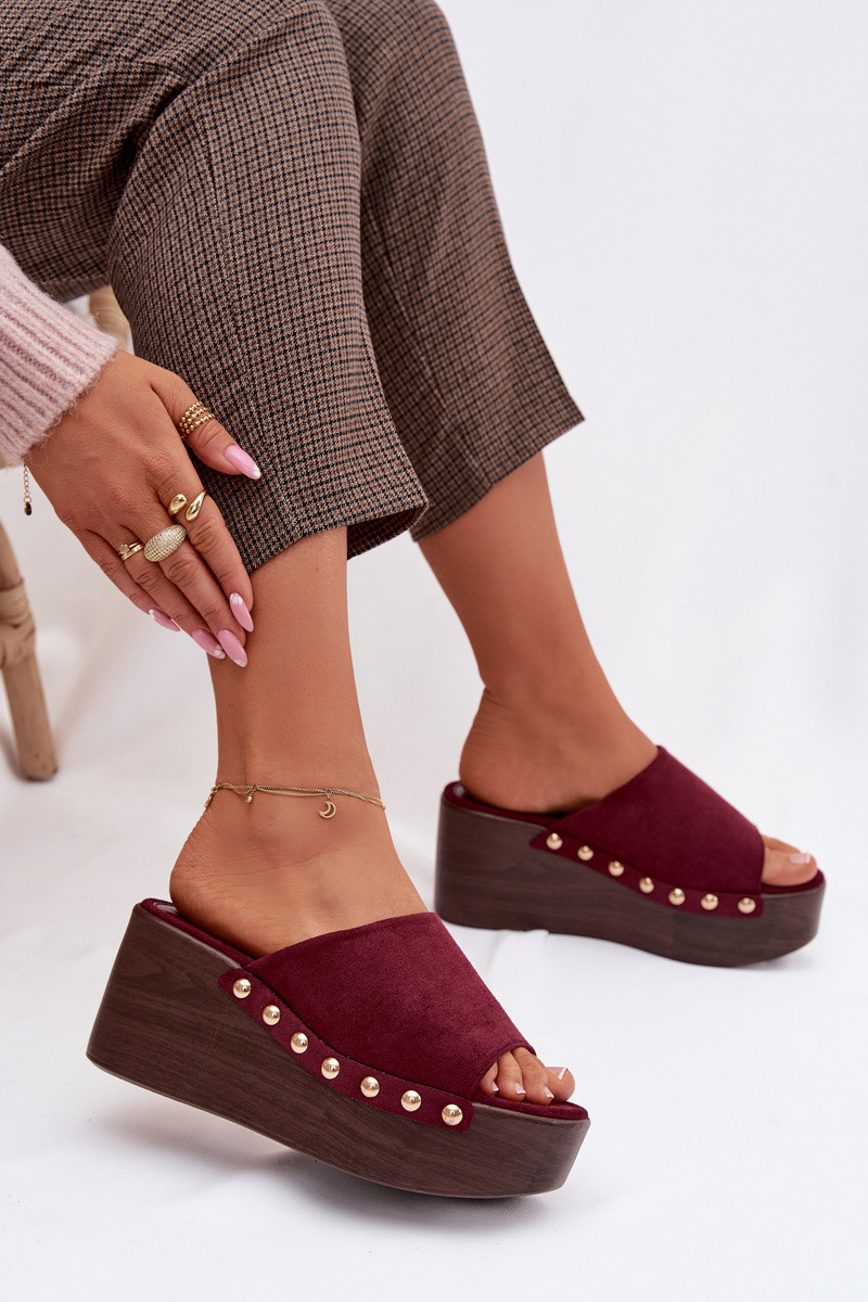 Pantoufles à plateforme en simili daim de couleur bordeaux Helivina