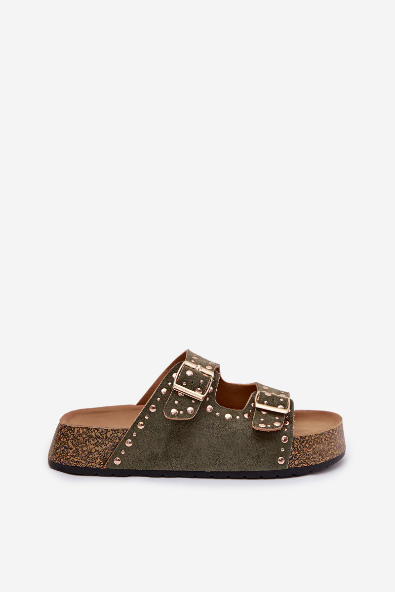 Pantoufles dorées avec boucles et clous de couleur kaki Tervina