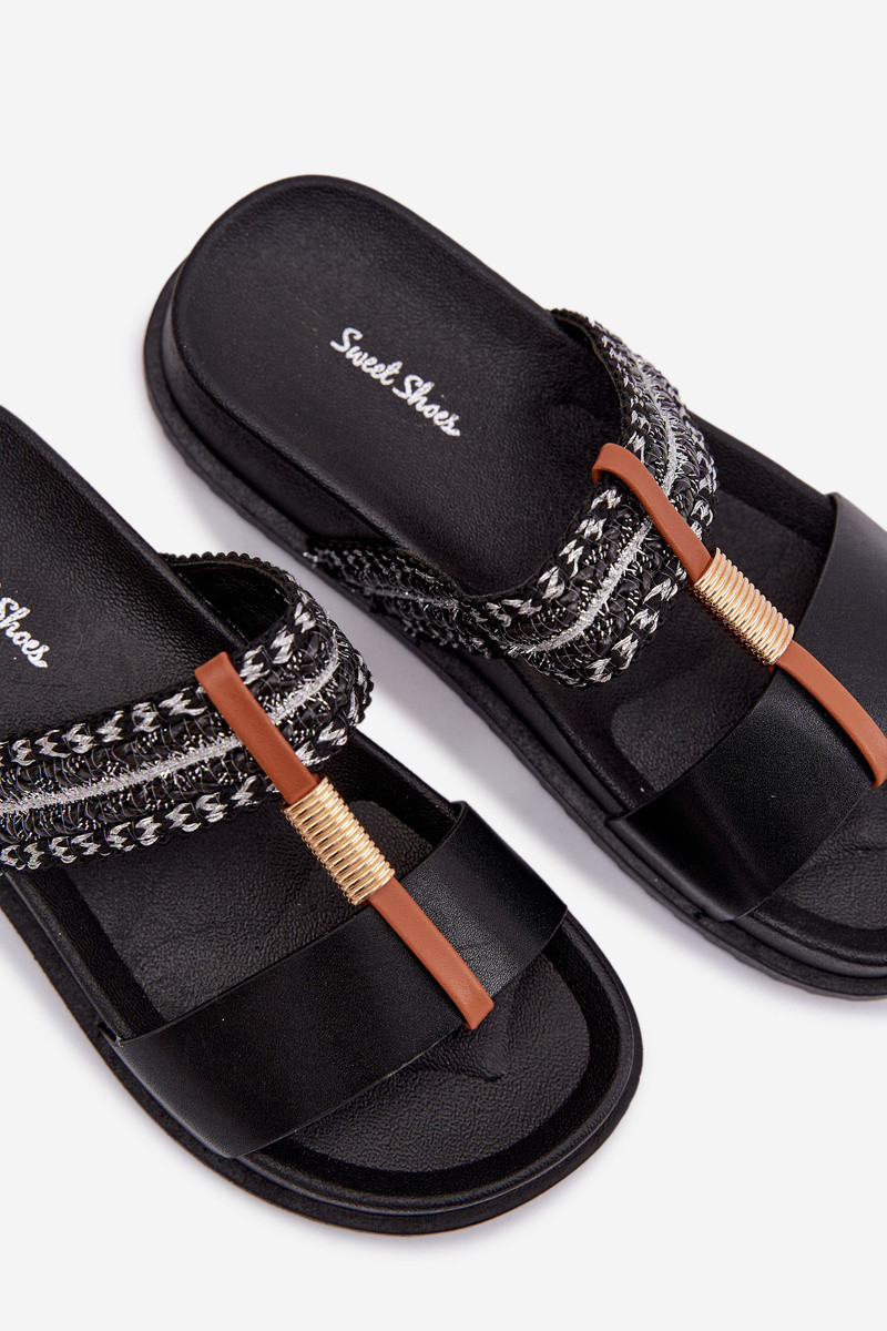 Chaussons pour femmes avec plateforme et bandes et détails dorés, noires, Tahlia