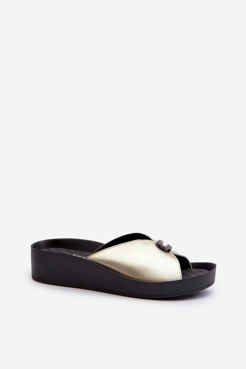 Chaussons en cuir pour femmes avec ornements couleur dorée S.Barski KV27-027