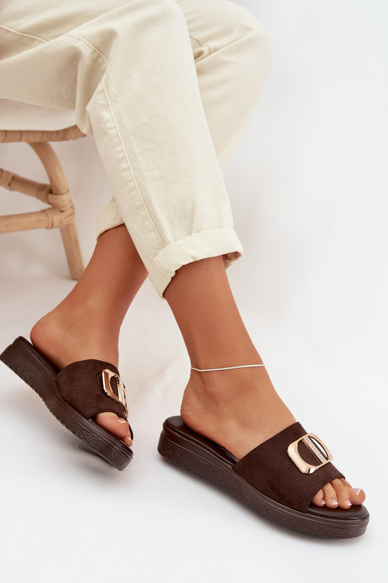 Pantoufles pour femmes Ze couleur doréem Detalem CzekoladoÀe Elmera