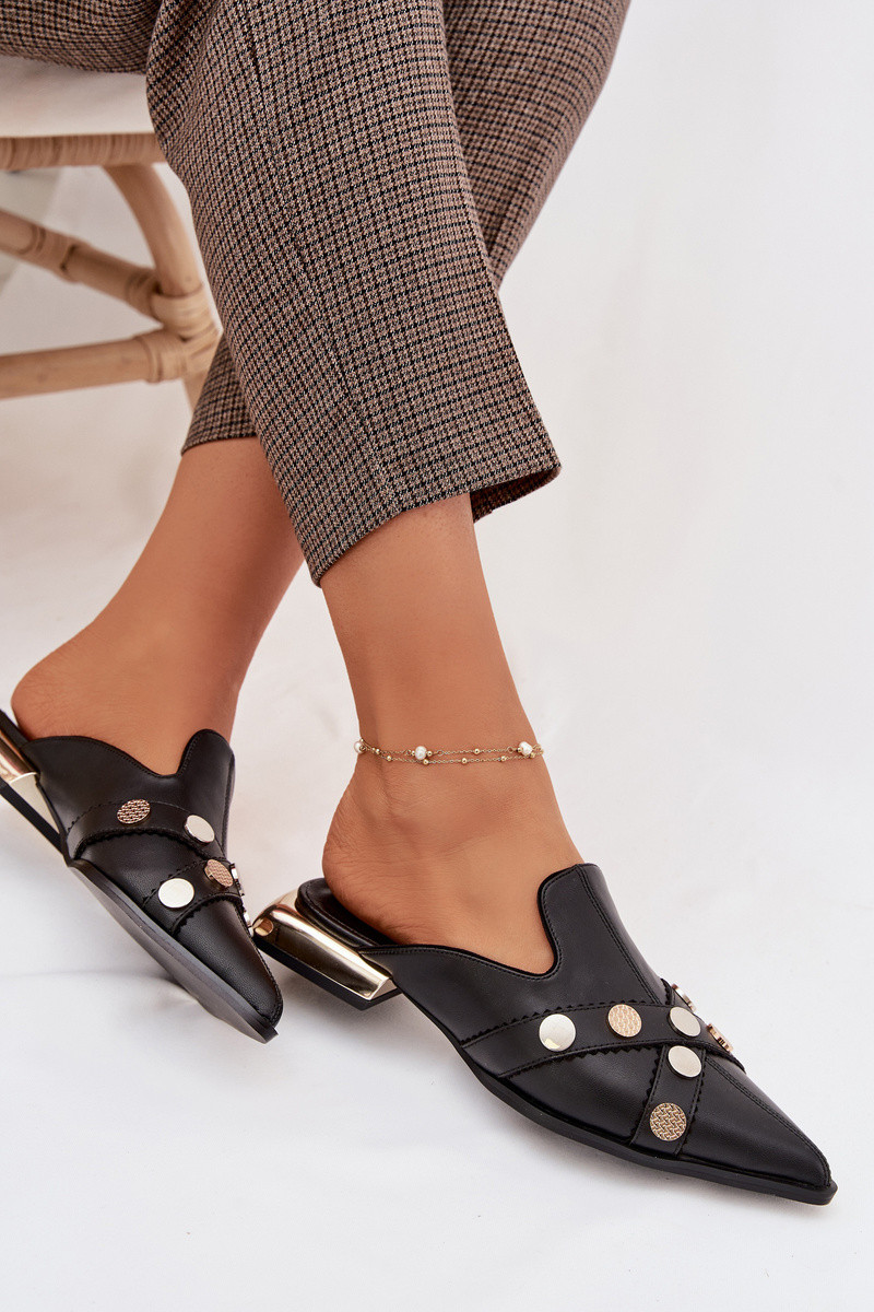 Pantoufles en cuir Mule Féminin avec des sangles D&A CR61-3058 couleur noire
