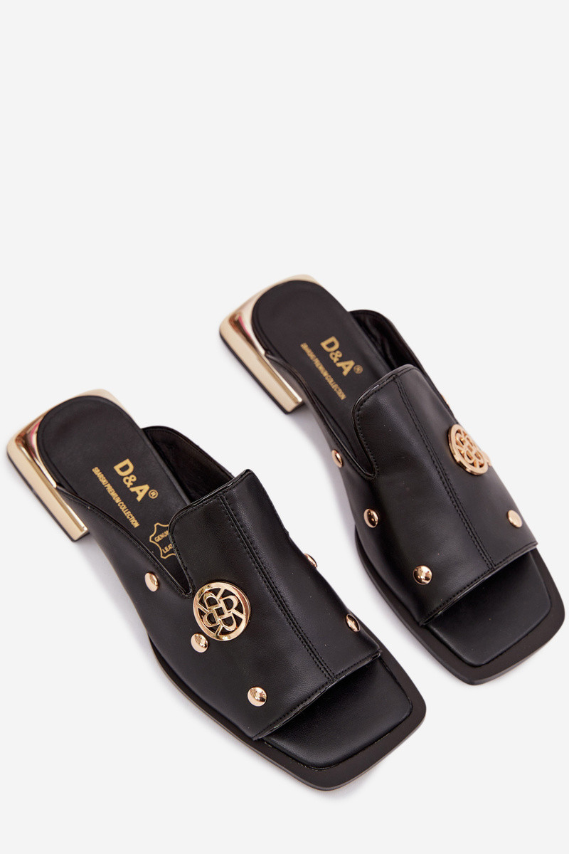 Mules en cuir avec décorations dorées D&A CR61-3060 couleur noire