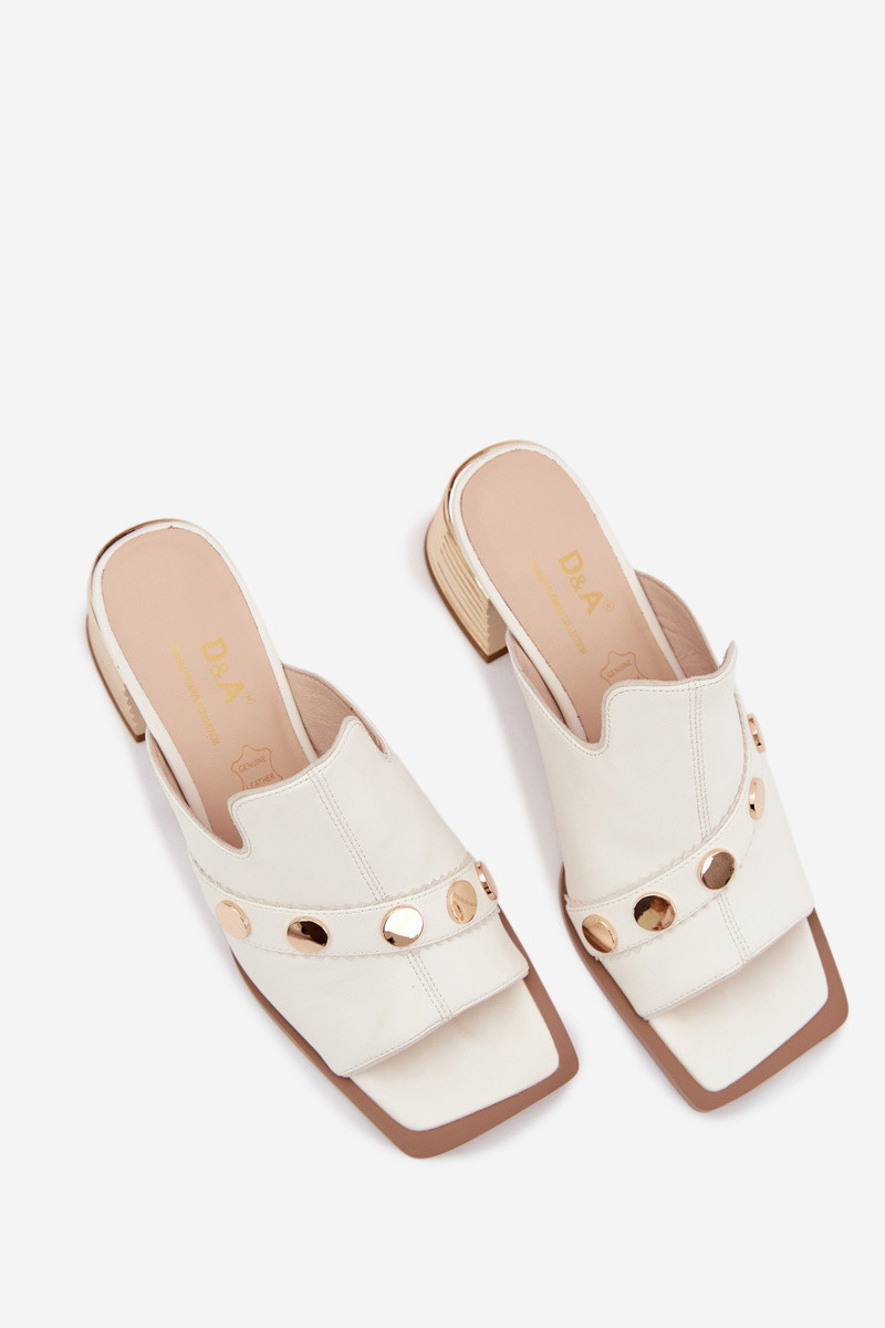 Mules en cuir avec talons et talons décorés D&A CR61-3063 couleur blanche