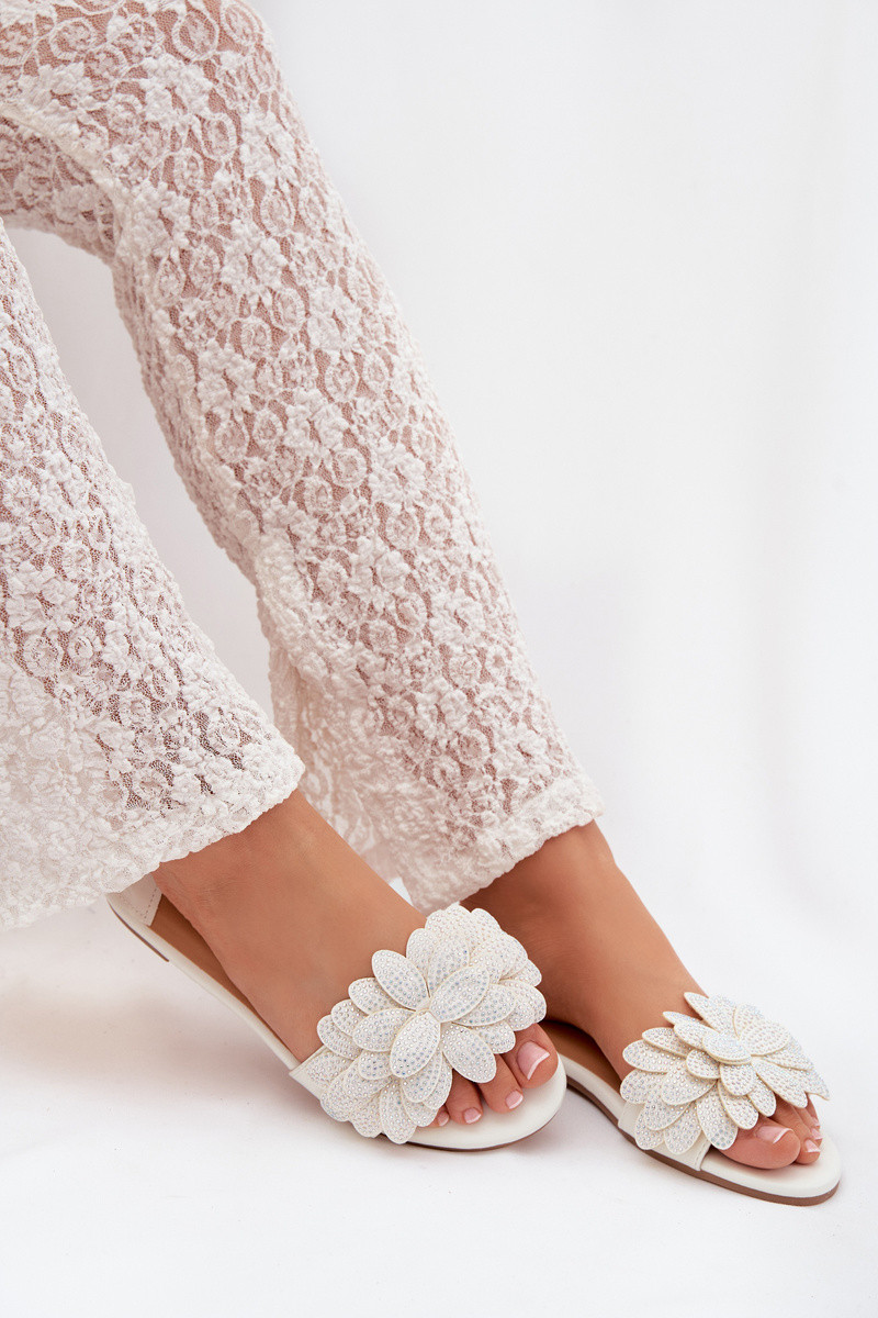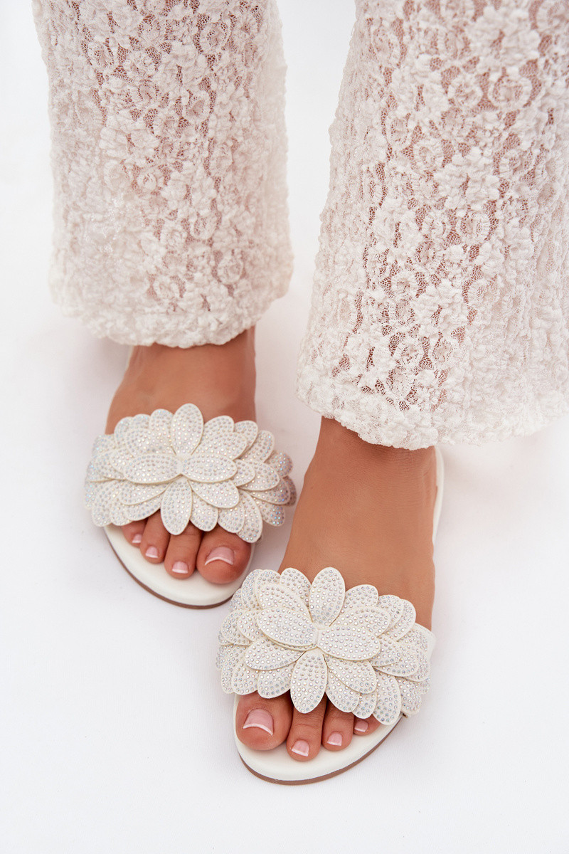 Chaussons pour femmes couleur blanche avec décoration Grelora