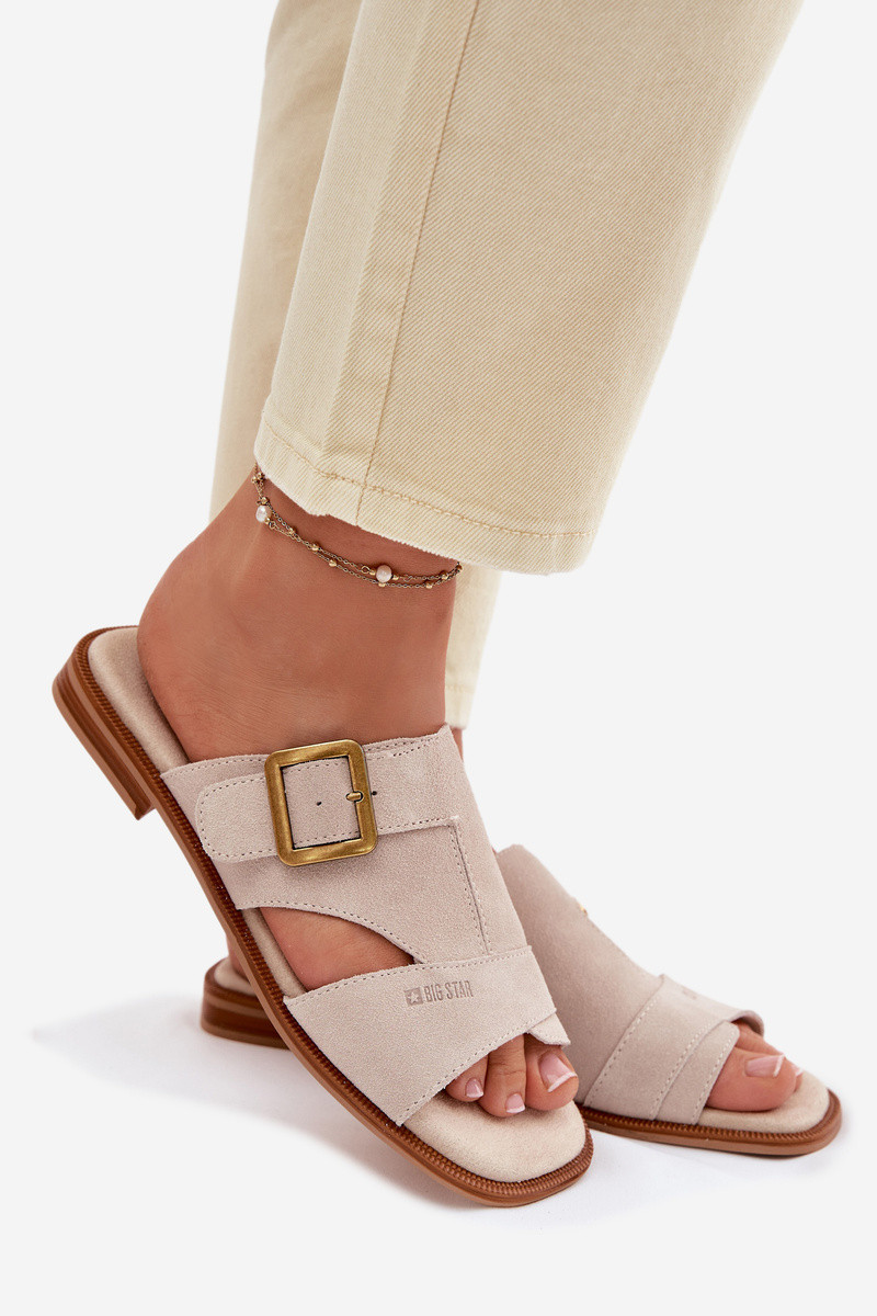 Chaussons femme en daim avec des talons larges avec boucles Big Star TT274476 beige