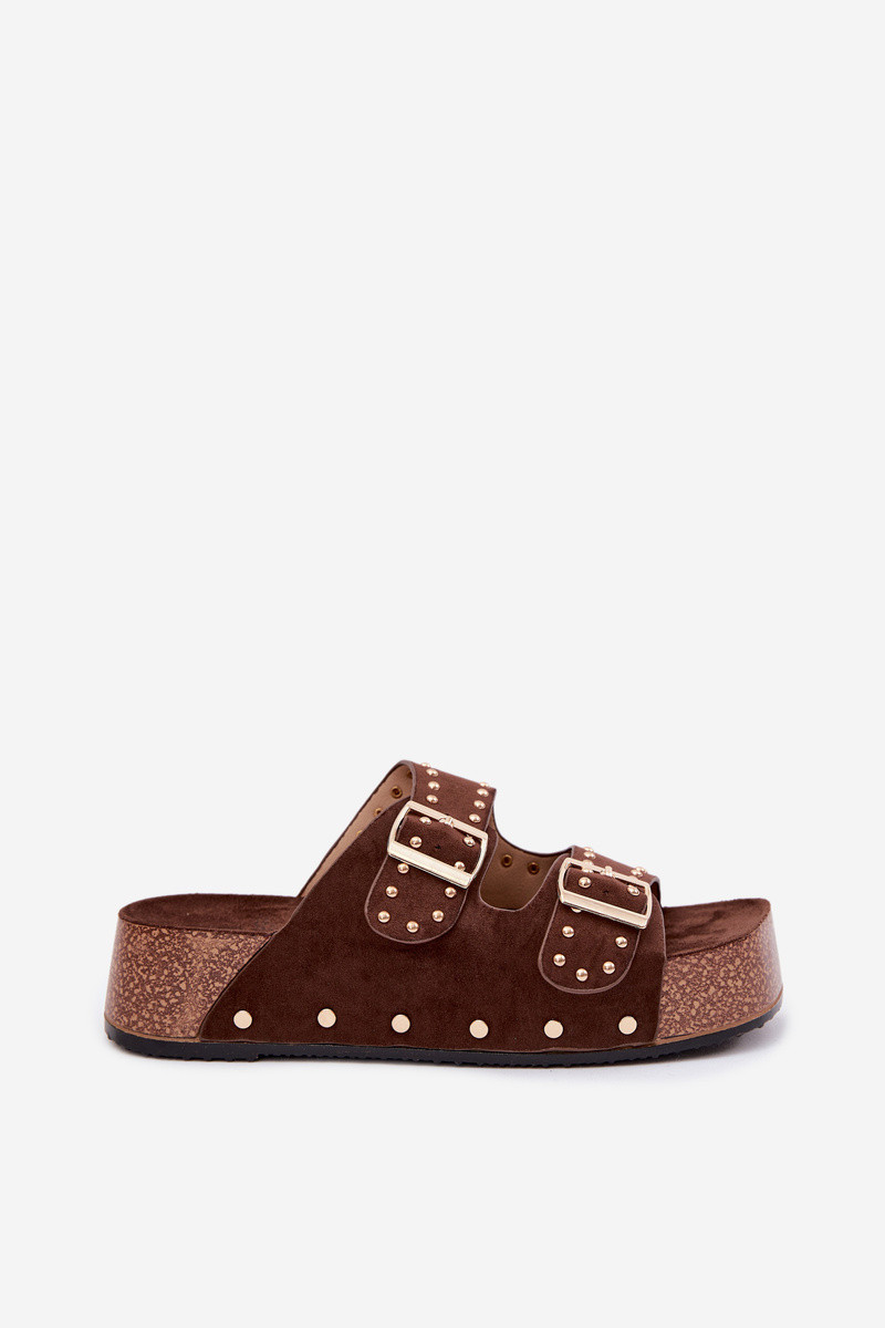 Sandales couleur chocolat pour femmes avec boucles et clous Ledira