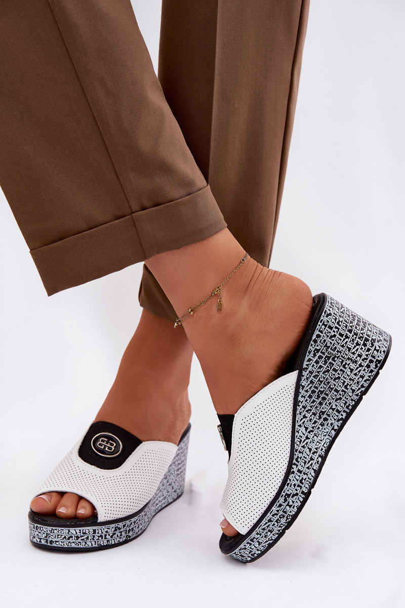 Pantoufles en cuir avec une plateforme avec des ornements S.Barski LR61-7011 couleur blanche