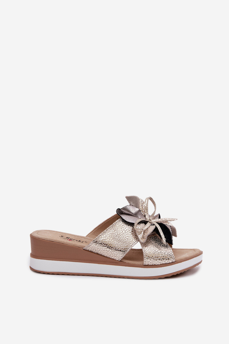 Pantoufles en cuir avec une plateformeDekoracyjnym Une fleur S.Barski GR61-5989 couleur dorée