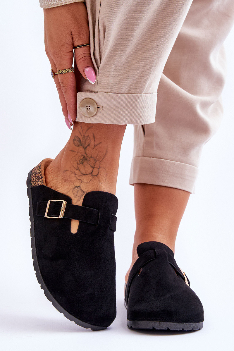 Claquettes en daim sur plateforme en liège couleur noire Vellma