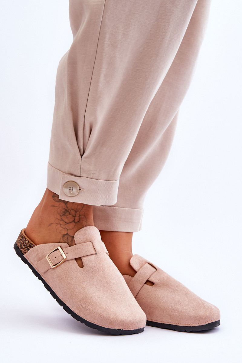 Claquettes en daim sur plateforme en liège couleur sable Vellma