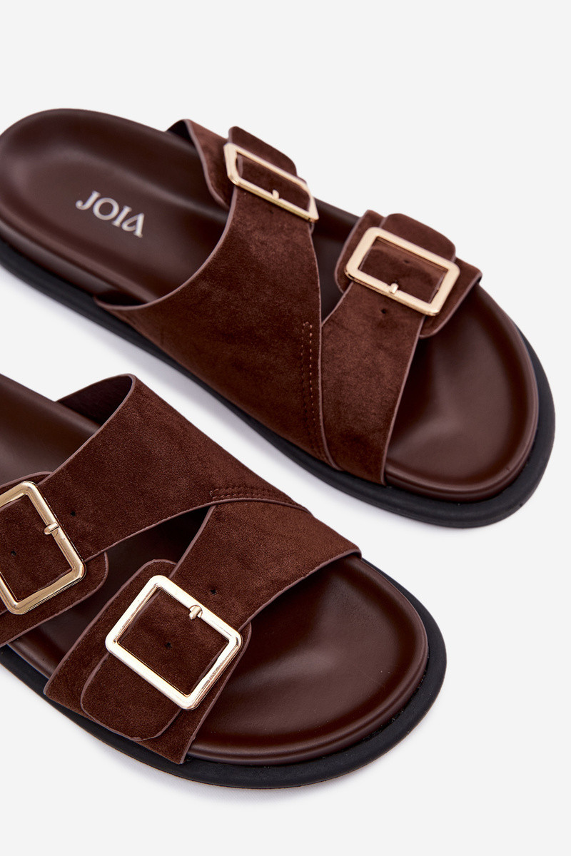 Pantoufles pour femmesImitacji en daimu couleur dorée avec boucles CzekoladoÀe Selissea