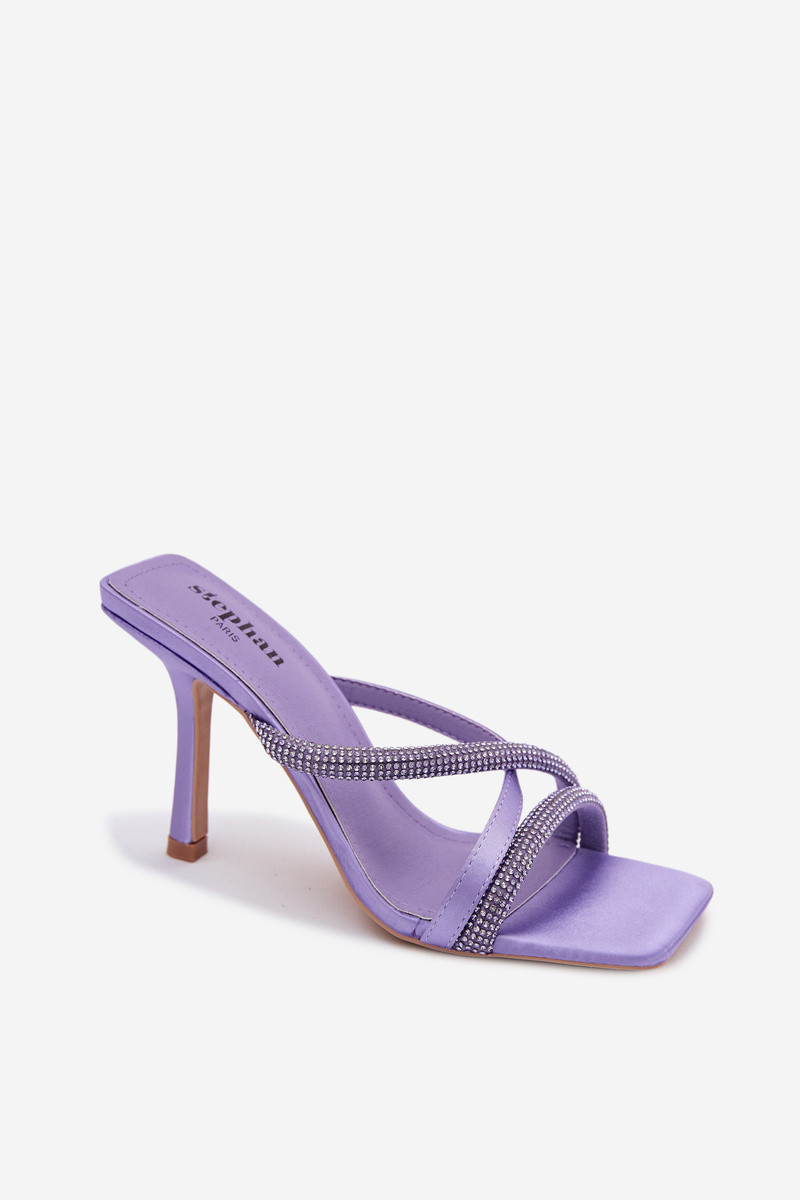 Pantoufles pour femmes avec des talons fins Bandes avec des yeux qui clignotent Couleur violette Karima